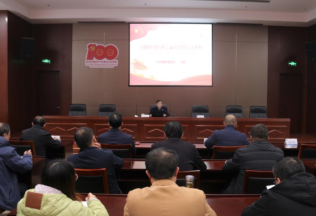 楊陟教授以“在新時代新征程上贏得更加偉大的勝利”為題,從總體把握黨的十九屆六中全會的主要內(nèi)容、全面認(rèn)識中國共產(chǎn)黨奮斗的偉大成就、充分領(lǐng)會中國共產(chǎn)黨百年奮斗的歷程、深刻理解中國共產(chǎn)黨百年奮斗的重大意義四個方面進(jìn)行了深入解讀。既有客觀理性的分析,又有具體生動的說明,深入淺出,具有很強的針對性、指導(dǎo)性。