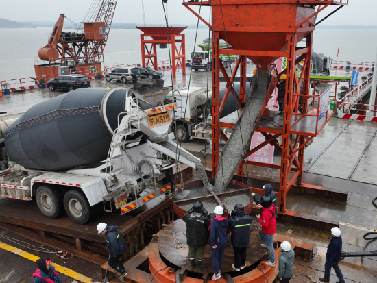 “此次灌注的是3號主墩19號樁。3號主墩共有68根鉆孔樁,每根樁直徑3.0米,樁長95米,成孔深度達(dá)122.5米,入巖深度約71.4米,鉆進(jìn)施工采用徐工XR580HD、XR600E和XR700型旋挖鉆機(jī)逐級擴(kuò)孔鉆進(jìn)成孔。”中鐵大橋局G3銅陵長江公鐵大橋項目一分部總工程師宋海濤介紹,G3銅陵長江公鐵大橋是世界首座雙層斜拉-懸索協(xié)作體系大橋,3號墩和4號墩是大橋的兩個主墩,承載988米的主跨一跨過江。