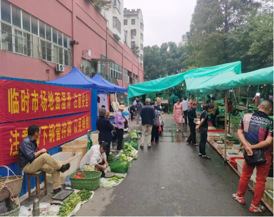 新的臨時(shí)農(nóng)貿(mào)市場(chǎng)位于原市場(chǎng)后門處,面積約為900平方米,容納了市場(chǎng)有愿意遷出的50戶固定經(jīng)營戶,設(shè)有蔬菜、水產(chǎn)、肉類、干貨、豆制品、凍貨等數(shù)十個(gè)區(qū)塊,還設(shè)有自產(chǎn)自銷區(qū),將在接下來兩個(gè)多月市場(chǎng)改造期間,有效解決周邊群眾菜籃子問題。