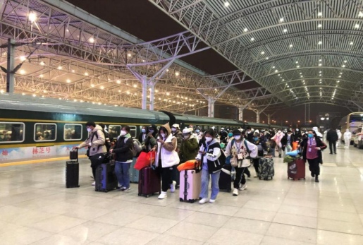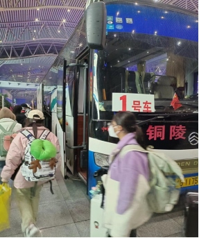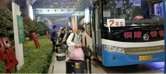 11月16日21時15分,銅陵交投汽運有限公司四輛大巴車提前兩小時趕到合肥,整齊??吭诟哞F站外,在站內(nèi)工作人員引導下,安全有序從高鐵專列上接駁轉(zhuǎn)運165名藏族學生踏上了來銅歸學之途,并于次日凌晨3點平安送抵銅陵市石山村隔離點。