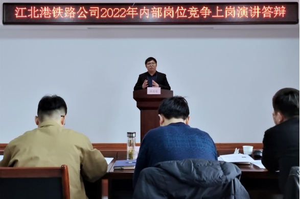 競(jìng)崗會(huì)上,競(jìng)崗者圍繞對(duì)競(jìng)爭(zhēng)崗位的認(rèn)知、工作思路及目標(biāo)設(shè)想、團(tuán)隊(duì)協(xié)作和管理等幾方面逐一進(jìn)行慷慨激昂的演講,或引用數(shù)據(jù),講述過(guò)往業(yè)績(jī)和故事;或聯(lián)系自身,將個(gè)人優(yōu)勢(shì)與崗位工作緊密結(jié)合談發(fā)展。在競(jìng)崗演講過(guò)程中,競(jìng)崗者從容自信演講,沉著應(yīng)對(duì)答辯,考驗(yàn)了競(jìng)崗人員業(yè)務(wù)知識(shí)的日常積累和隨機(jī)應(yīng)變能力,充分展現(xiàn)了江北港鐵路公司職工朝氣蓬勃、銳意進(jìn)取、敢于擔(dān)當(dāng)?shù)牧己镁耧L(fēng)貌,整個(gè)過(guò)程緊張有序,精彩紛呈。