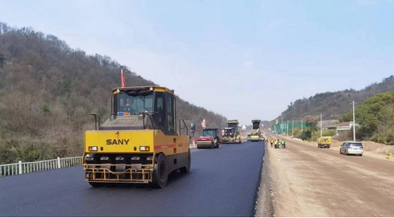 3月7日上午,在G330一期錢鋪段路面上,數(shù)臺攤鋪機和壓路機正在進行瀝青攤鋪和路面平整工作,經(jīng)過工人們數(shù)個小時的連續(xù)奮戰(zhàn),順利完成試驗段瀝青下面層鋪筑任務(wù),意味著G330銅陵段一級公路改建工程(一期)正式進入瀝青路面施工階段。
