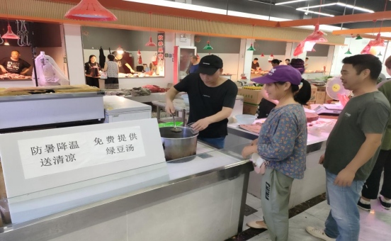 同時(shí),針對近期連續(xù)出現(xiàn)的高溫天氣,世界花園農(nóng)貿(mào)市場為營造良好的市場氛圍,切實(shí)讓商戶和消費(fèi)者從經(jīng)營和購物中感受到市場管理方的關(guān)愛,自8月1日起,世界花園農(nóng)貿(mào)市場開展“夏日送清涼,消暑綠豆湯”活動(dòng),為廣大商戶和消費(fèi)者送去一份“清涼”。此次活動(dòng)的開展,不僅受到廣大商戶和消費(fèi)者的稱贊,還受到上級(jí)主管部門的表揚(yáng),推動(dòng)了分公司服務(wù)水平再上新臺(tái)階。