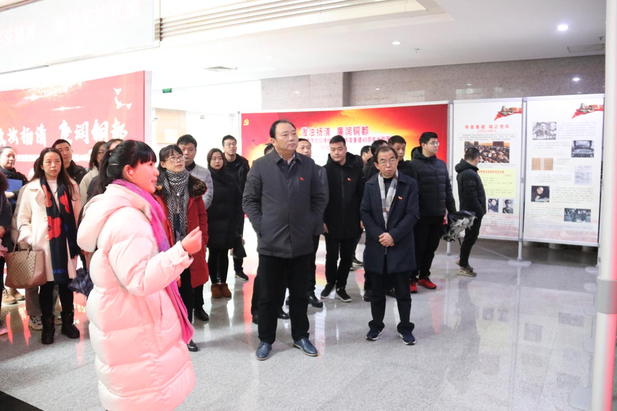 1月11日上午,集團(tuán)公司舉行“主題黨日”活動(dòng),組織機(jī)關(guān)全體人員、子公司負(fù)責(zé)人及職工黨員赴市行政中心參觀《激濁揚(yáng)清 廉潤銅都——慶祝改革開放暨黨的紀(jì)律檢查機(jī)關(guān)恢復(fù)重建40周年大型圖片展》。