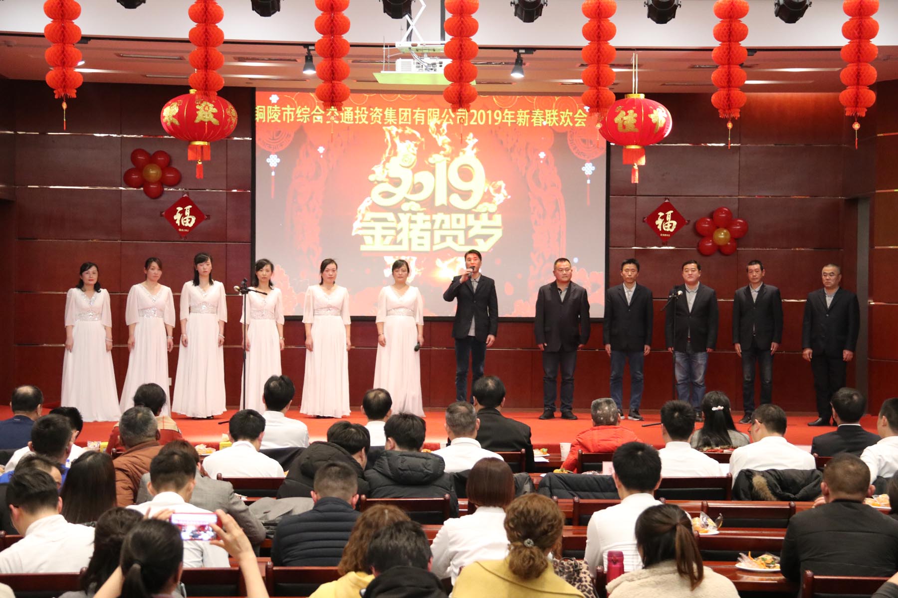 17時30分,晚會在大合唱《春天的故事》中拉開序幕,深情恢弘的演唱瞬間感染了在場所有人。朗誦《相約今天 展望未來》、二胡演奏《紫色激情》、歌曲《我的未來不是夢》、《驛動的心》、《東方之珠》、《明天會更好》、《外面的世界》等節(jié)目展現(xiàn)了集團(tuán)公司全體職工對未來幸福新生活的向往與憧憬。手勢舞《中華民族》、舞蹈《今夜無眠》、相聲《不忘初心》、《三句半》等節(jié)目贏得了全掌觀眾陣陣掌聲,將整場演出推向了高潮,晚會在合唱《拜新年》的歌聲中緩緩落下帷幕。美好的祝福在歌聲里傳遞,新年的激情在舞姿中釋放。整場聯(lián)歡會以歌舞為主,匯聚了器樂、朗誦、小品、曲藝等各種藝術(shù)形式,訴說著交投兒女自己的故事。