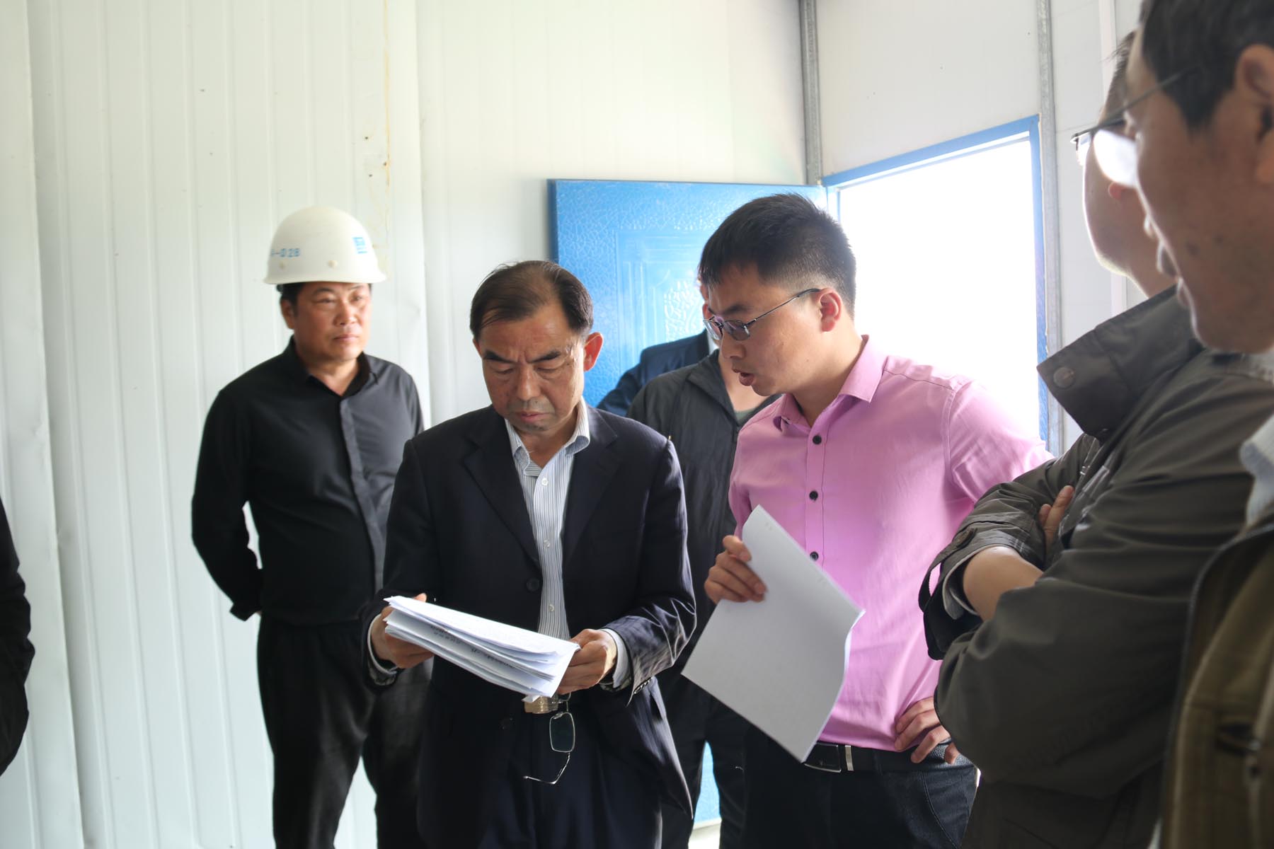 章新華一行首先來到項目施工現(xiàn)場查看項目施工情況,聽取工程進度以及安全文明施工等有關(guān)情況匯報,并就項目管理及風險防控有關(guān)事項與相關(guān)人員進行交流。