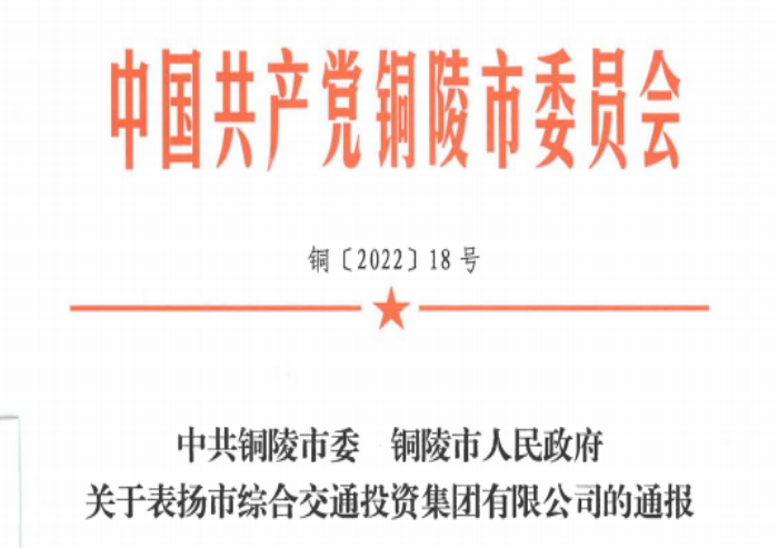 中共銅陵市委 銅陵市人民政府關(guān)于表?yè)P(yáng) 市綜合交通投資集團(tuán)有限公司的通報(bào)