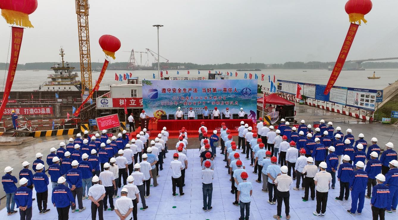 6月1日上午9時(shí),在G3銅陵長江公鐵大橋4#墩施工現(xiàn)場舉辦2022年“安全生產(chǎn)月”啟動儀式,全體建設(shè)者進(jìn)行現(xiàn)場莊嚴(yán)宣誓。