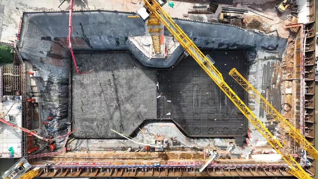 主塔墩承臺(tái)是大橋的關(guān)鍵控制性節(jié)點(diǎn)之一,G3銅陵長江公鐵大橋南主塔墩承臺(tái)面積3373.5平方米,相當(dāng)于8個(gè)標(biāo)準(zhǔn)籃球場的面積,承臺(tái)混凝土高7米。中鐵大橋局G3銅陵長江公鐵大橋項(xiàng)目常務(wù)副經(jīng)理牟翔介紹,為確?;炷临|(zhì)量,在確保滿足混凝土養(yǎng)護(hù)周期的同時(shí)最大限度地縮減工期時(shí)間,項(xiàng)目部進(jìn)一步優(yōu)化施工方案,混凝土采取水平分層、橫向分塊澆筑工藝,按大體積混凝土技術(shù)要求和工藝配制承臺(tái)混凝土,承臺(tái)混凝土分2層澆筑,每次澆筑高度3.5米,每層分兩次澆筑,中間設(shè)置2米后澆段?;炷翝仓弯摻罱壴瑫r(shí)進(jìn)行,再次體現(xiàn)了不一樣的G3速度。