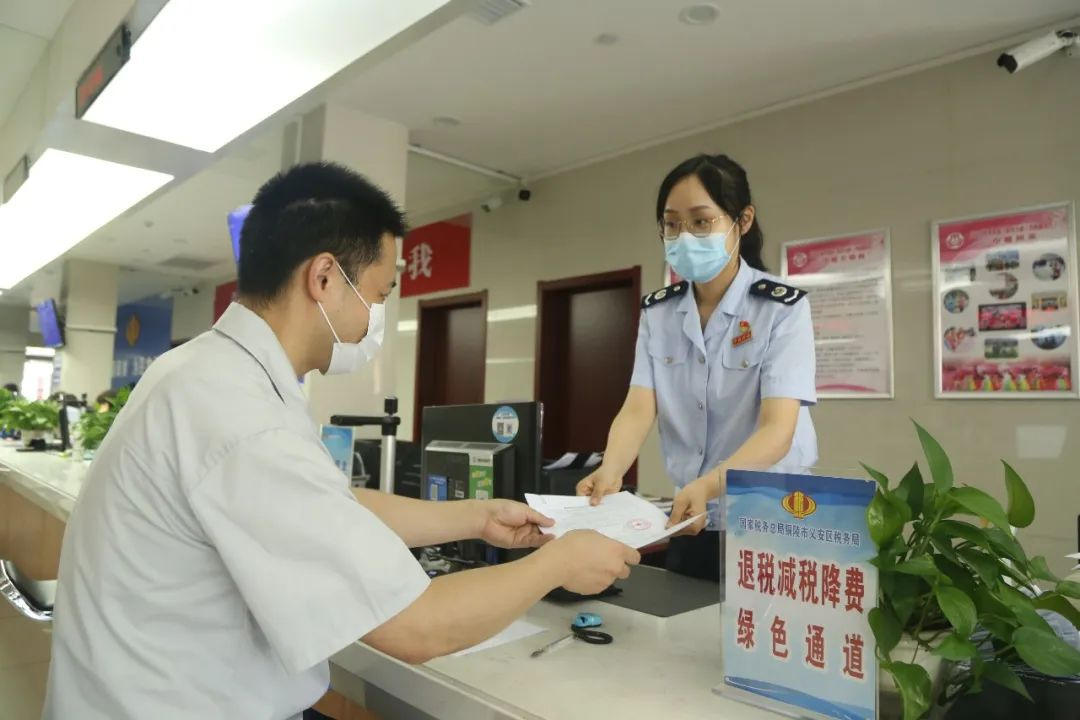 ↑↑↑(義安區(qū)稅務(wù)局辦稅服務(wù)廳開辟出退稅減稅降費(fèi)綠色通道,為納稅人繳費(fèi)提速辦理涉稅事項(xiàng)。)