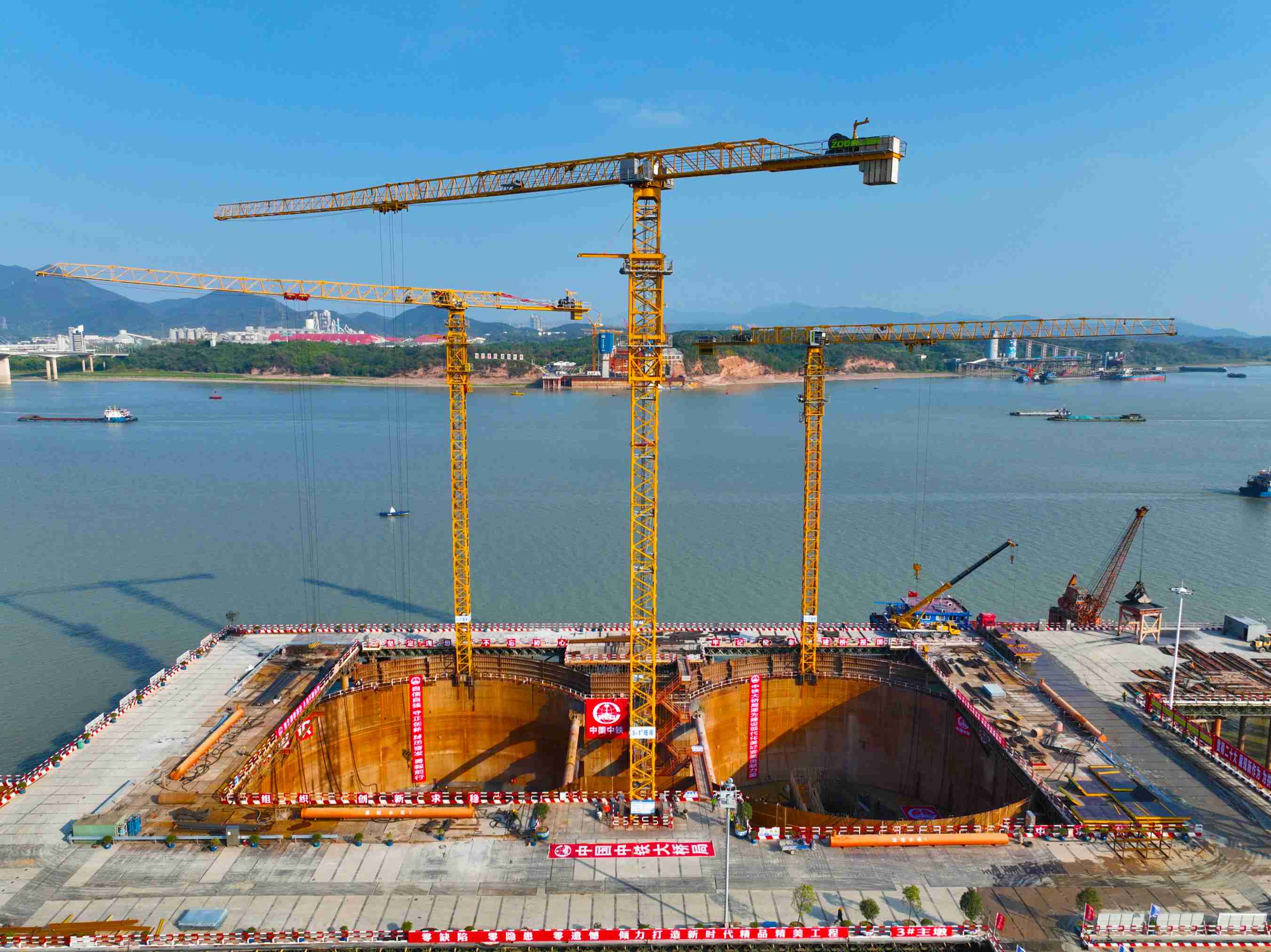 3號墩是G3大橋主塔墩,建成后高253.5米,相當于85層樓高。3號墩承臺面積比11個標準籃球場還大。承臺高7米,混凝土總量26292立方米。該承臺規(guī)模巨大、構造復雜、施工技術難點多、工期控制緊、質量要求高,是G3大橋施工的關鍵控制點之一。