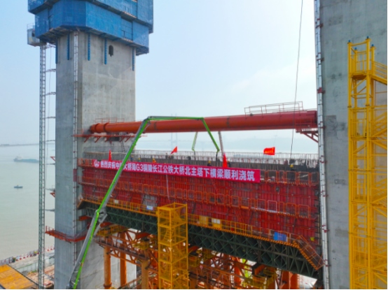 4月6日晚,由中鐵大橋局承建的世界首座鋼桁梁斜拉—懸索協(xié)作體系橋——G3銅陵長(zhǎng)江公鐵大橋北主塔下橫梁開始澆筑混凝土。大橋主塔施工迎來關(guān)鍵節(jié)點(diǎn),為下一步上塔柱施工打下堅(jiān)實(shí)基礎(chǔ)。
