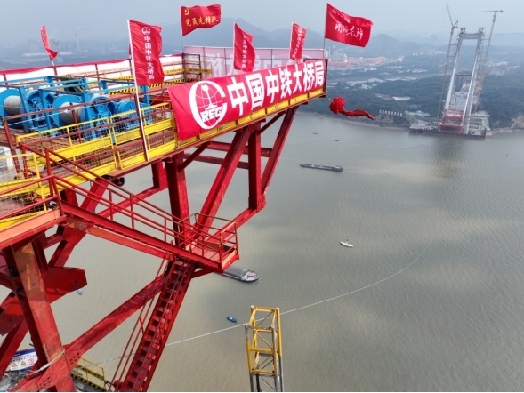 10月20日11時(shí)18分,由市交投集團(tuán)投資建設(shè)、中鐵大橋院設(shè)計(jì)、中鐵大橋局承建的G3銅陵長江公鐵大橋先導(dǎo)索順利過江,大橋南北主塔成功空中“牽手”,標(biāo)志著世界首座雙層斜拉-懸索協(xié)作體系大橋全面轉(zhuǎn)入上部結(jié)構(gòu)貓道施工階段。
