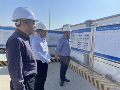在蚌埠市,龍道寧一行赴中廣核新能源安徽有限公司固鎮(zhèn)分公司固鎮(zhèn)縣儲(chǔ)能電站項(xiàng)目現(xiàn)場(chǎng),通過(guò)實(shí)地參觀、聽取情況介紹等,詳細(xì)了解了儲(chǔ)能項(xiàng)目建設(shè)情況,并就儲(chǔ)能項(xiàng)目建設(shè)投資、運(yùn)營(yíng)過(guò)程中的相關(guān)問題進(jìn)行了深入交流探討。
