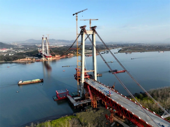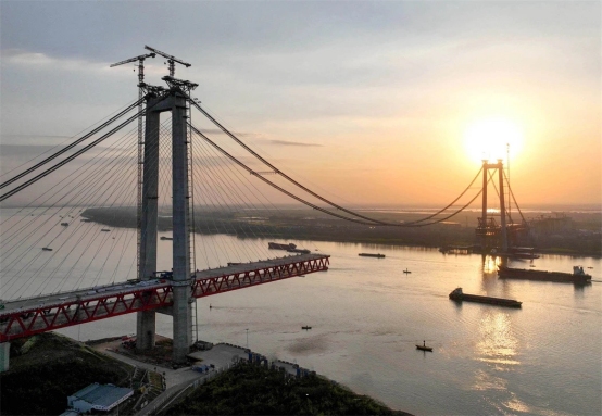 當(dāng)日,中鐵大橋局采用單懸臂法順利完成G3銅陵長(zhǎng)江公鐵大橋北岸首節(jié)1200噸中跨鋼梁架設(shè),標(biāo)志著大橋全面進(jìn)入主跨鋼梁施工階段,預(yù)計(jì)今年6月下旬完成大橋合龍。