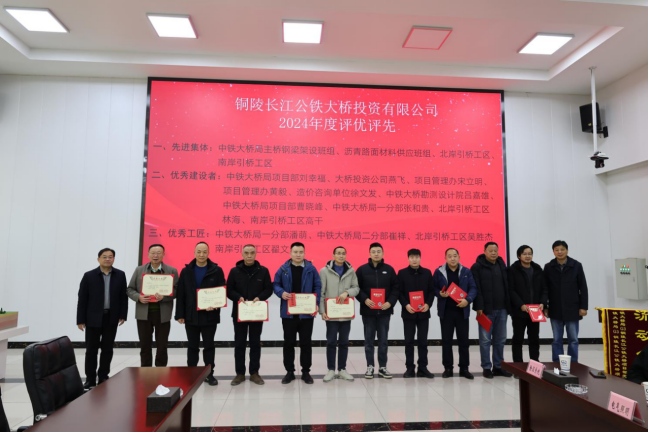 會議對榮獲“百日大干”勞動競賽及G3銅陵長江公鐵大橋2024年度先進集體及先進個人進行了表彰并頒獎。對2025年大橋保通作出部署要求,明確各重點工程完成的時間節(jié)點,確保在7月1日前全面完成大橋主體及附屬工程達到公路通車條件。