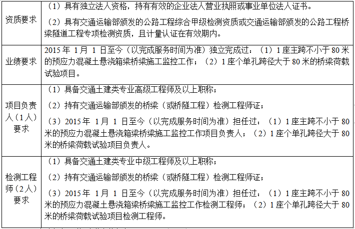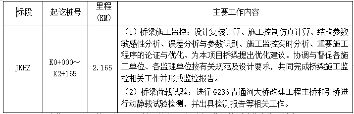 2.9 服務(wù)期:自合同簽訂之日起至橋梁施工監(jiān)控及橋梁荷載檢測驗收合格后結(jié)束。