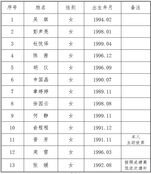 現(xiàn)將交投集團司屬公司銅陵市江北公路管理有限責任公司收費員、監(jiān)控員崗位招聘體檢入圍人員名單公示如下: