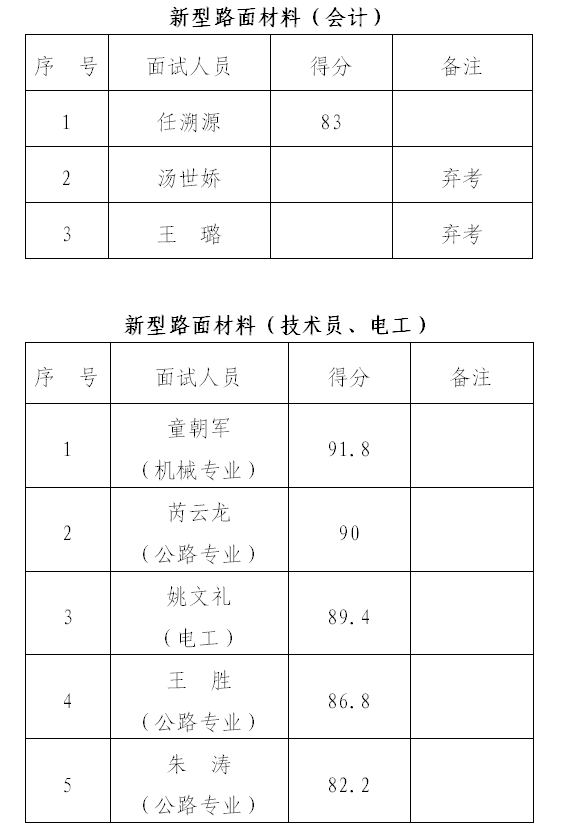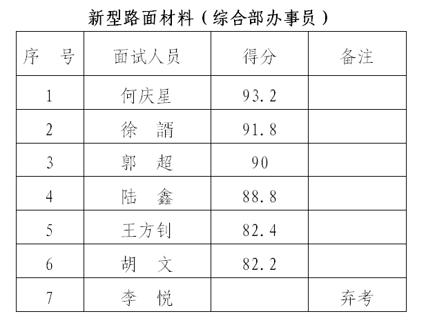 根據(jù)《銅陵市綜合交通投資集團(tuán)有限公司公開(kāi)招聘人員面試公告》,我公司已于1月13日開(kāi)展銅陵市綜交新型路面材料有限責(zé)任公司、銅陵交投再生資源綜合利用有限公司招聘人員面試工作,現(xiàn)將擬招錄人員名單公示如下。