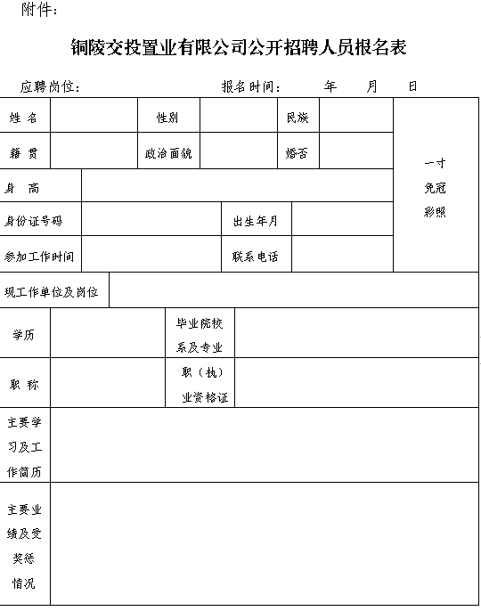 ?附件:銅陵交投置業(yè)有限公司公開招聘人員報(bào)名表