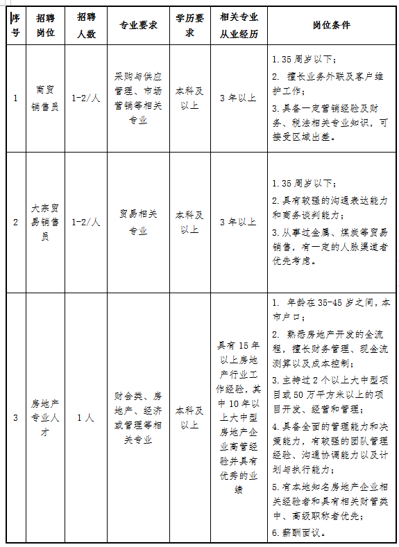 二、具體崗位要求
