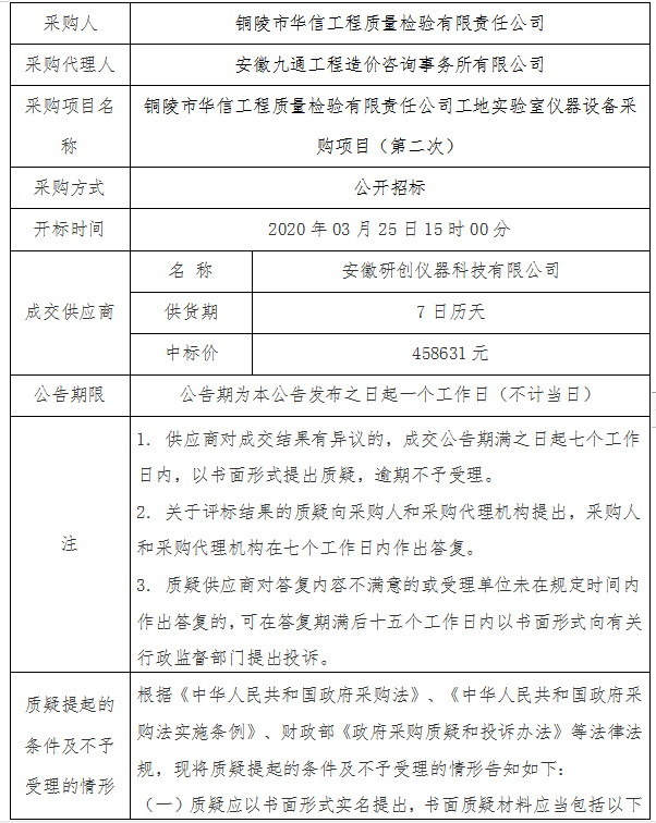 采購人:銅陵市華信工程質(zhì)量檢驗(yàn)有限責(zé)任公司