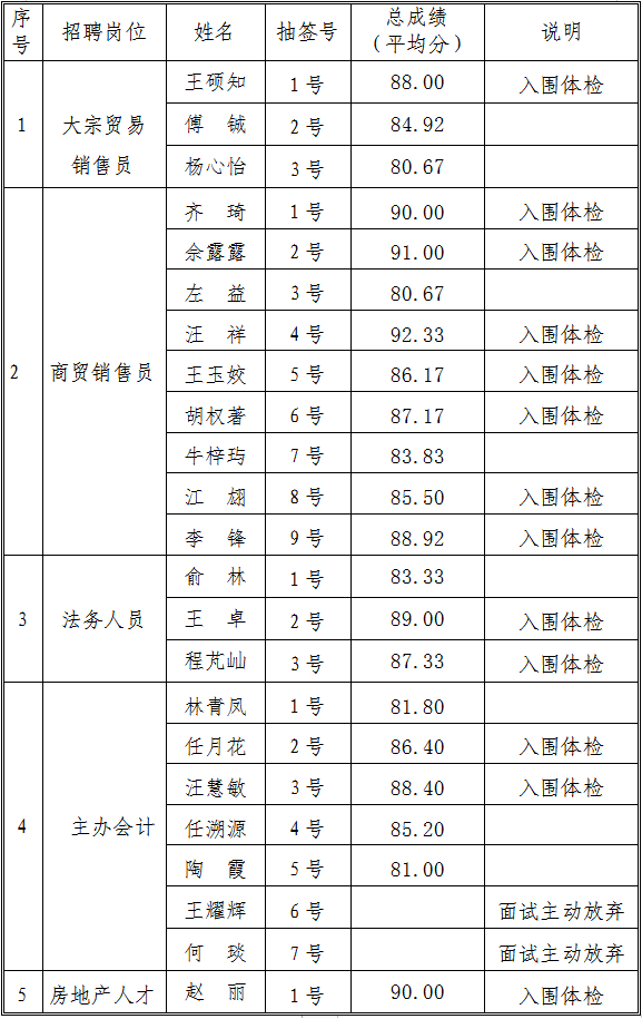 因公司經(jīng)營業(yè)務(wù)發(fā)展需要,根據(jù)應(yīng)聘者現(xiàn)場面試綜合能力表現(xiàn)情況,結(jié)合公司儲備人才需求,經(jīng)集團(tuán)公司黨工委會議研究決定,現(xiàn)將交投集團(tuán)公司商貿(mào)銷售員等崗位招聘情況公示如下:
