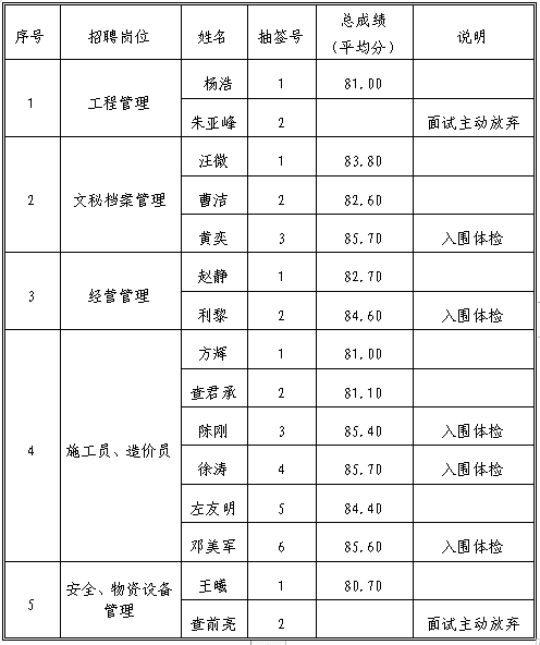 根據(jù)應(yīng)聘者現(xiàn)場(chǎng)面試綜合能力表現(xiàn)情況,結(jié)合公司儲(chǔ)備人才需求,經(jīng)公司研究決定,現(xiàn)將招聘情況公示如下: