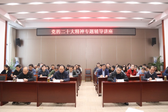 會上,汪洋教授圍繞深入學習領會黨的二十大精神,重點從“黨的二十大的主題、過去五年的工作和新時代十年的偉大變革、開辟馬克思主義中國化時代化新境界、新時代新征程中國共產黨的歷史使命、奪取全面建設社會主義現(xiàn)代化國家新勝利的戰(zhàn)略任務、堅定不移全面從嚴治黨”六個方面作了系統(tǒng)闡釋和解讀。輔導報告主題鮮明、內容豐富,具有很高的政策理論性和實踐指導性。