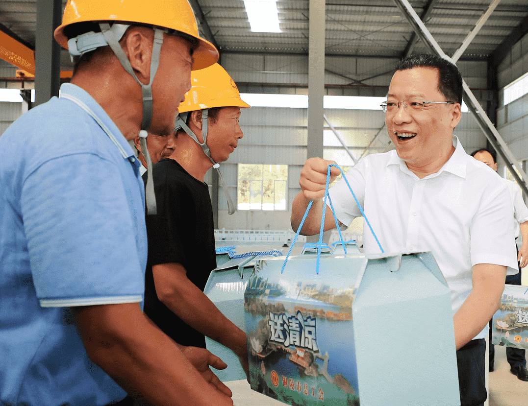 連日來,銅陵持續(xù)晴熱高溫,給一線職工帶來很大考驗。7月15日上午,市委書記丁純深入我公司部分項目現(xiàn)場,實地調(diào)研項目建設(shè)情況,看望慰問堅守崗位的一線職工,代表市委、市政府向全市奮戰(zhàn)在高溫一線的廣大職工表示慰問和感謝。市委常委、秘書長、宣傳部部長潘榮華,集團(tuán)公司黨委書記、董事長何成龍參加。