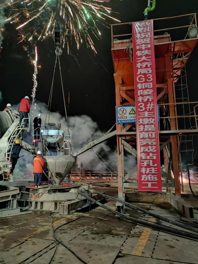 G3銅陵長江公鐵大橋項目:主塔墩3、4號墩樁基全部澆筑完成,2號墩樁基完成10根,5號墩樁基完成1根,6號墩樁基完成11根,水泥攪拌樁完成1236根,北錨碇導(dǎo)墻完成100%,合建段引橋共完成樁基66根,南錨碇土石方開挖完成24%,油罐拆除完成52%。