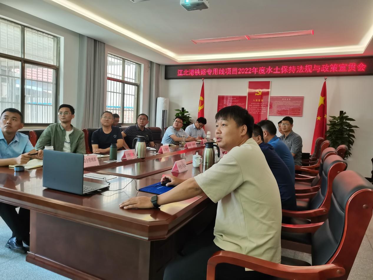 為提高全體參建單位水保法律法規(guī)意識(shí),扎實(shí)有序推進(jìn)項(xiàng)目建設(shè)期水土保持管理工作,6月9日上午,江北港鐵路專用線公司組織召開項(xiàng)目2022年度水土保持法規(guī)與政策宣貫會(huì)。公司副總經(jīng)理高家立主持會(huì)議。集團(tuán)公司總工程師,江北港鐵路公司董事長(zhǎng)、總經(jīng)理張葉來,公司部門相關(guān)人員、十六局項(xiàng)目經(jīng)理部、上海先行項(xiàng)目監(jiān)理部相關(guān)人員出席會(huì)議,二十局項(xiàng)目經(jīng)理部以視頻方式參會(huì)。