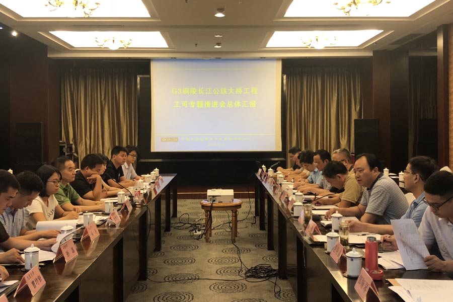 為進(jìn)一步推動G3銅陵長江公鐵大橋工可專題研究工作及評審、報批等相關(guān)程序有序開展,明確專題節(jié)點(diǎn)計劃,保障工程實施進(jìn)度。8月7日上午,公司黨工委書記、董事長何成龍,黨工委委員、副總經(jīng)理黃勇等一行赴合肥參加G3銅陵長江公鐵大橋工程可行性研究報告專題推進(jìn)會。