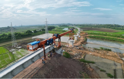 本項目共設(shè)兩個制梁場,分別是中鐵十六局郊區(qū)制梁場和中鐵二十局廬江制梁場。本次首梁架設(shè)由中鐵十六局郊區(qū)制梁場負責(zé)實施,郊區(qū)制梁場承擔(dān)江北港鐵路專用線項目546片T梁的制、架任務(wù),目前已完成預(yù)制201片,架設(shè)工作按計劃自章家院特大橋0號臺往大里程方向架設(shè)376片后調(diào)頭往小里程方向架設(shè)170片。中鐵二十局廬江制梁場計劃8月份完成認證,9月底開始架梁作業(yè)。
